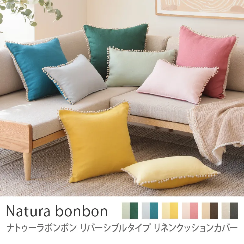 別注プロダクト|リネンクッションカバー ナトゥーラボンボン リバーシブルタイプ(30×45cm)【あす着対応】[nabnr-cu-s]